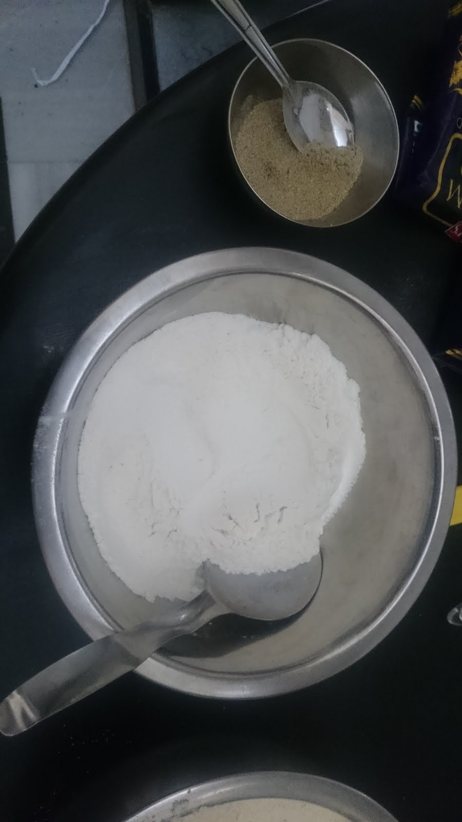 3. Sieve Flour, Baking Powder & Soda together. Add Cardamom Powder.