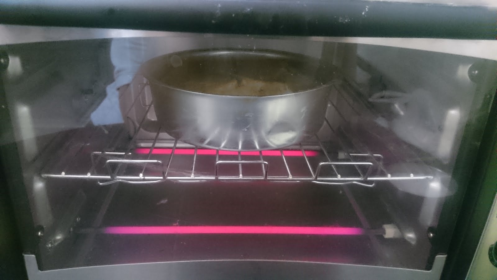 8. After the timer goes off, put a skewer in the centre of the cake and if it comes out clean, your cake is done. If not, bake for another 5 minutes.