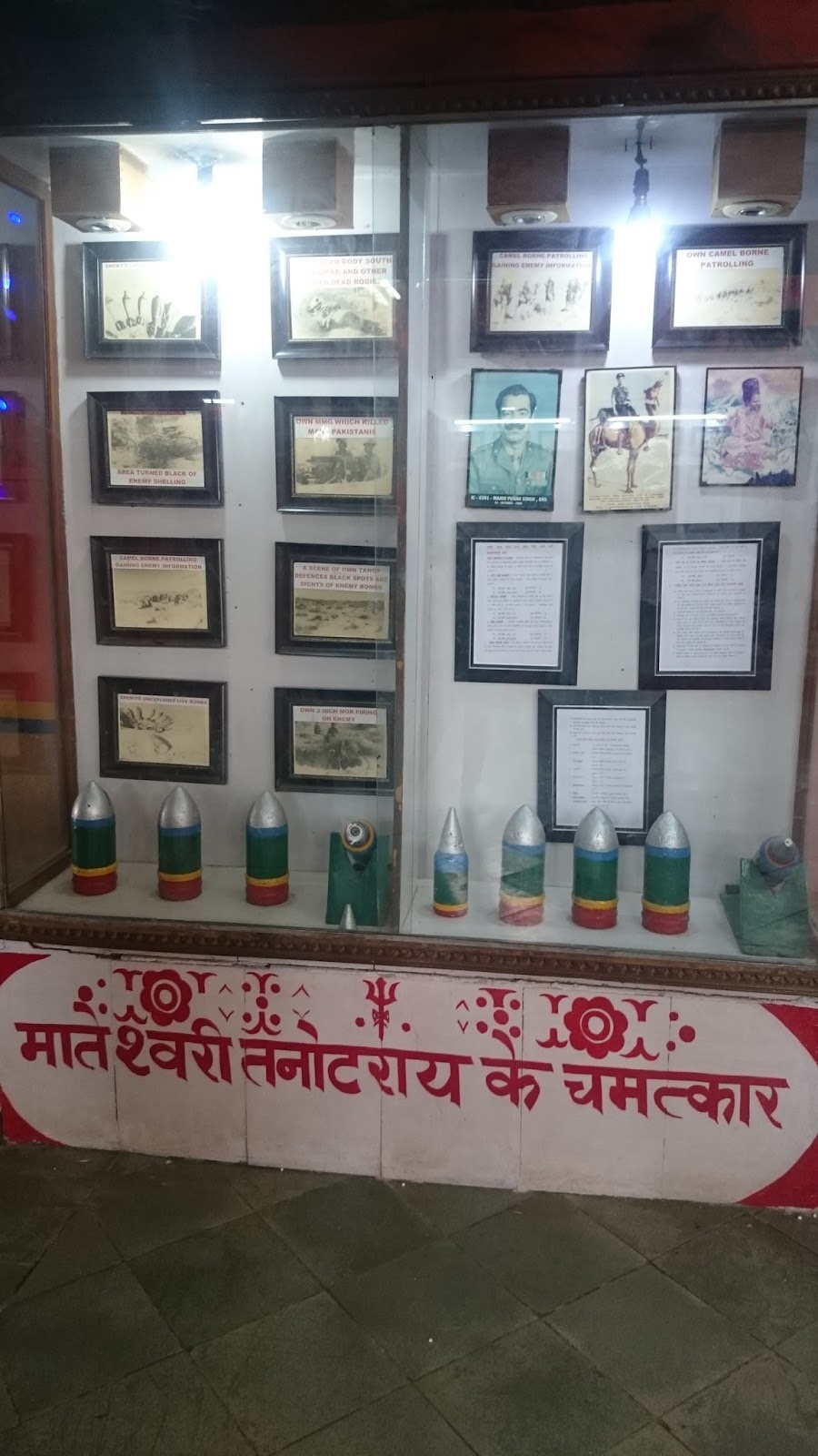 It is said that during the Indo-Pakistani War of 1965, Pakistani Army dropped several bombs targeting the temple but none of the bombs could fall on the temple and large numbers of bombs in the vicinity of the temple did not explode. After the war, the temple management was handed over to Border Security Force of India. On this date, Border Security Force Jawans man the temple. The temple has a museum which has collections of the unexploded bombs dropped by Pakistan.